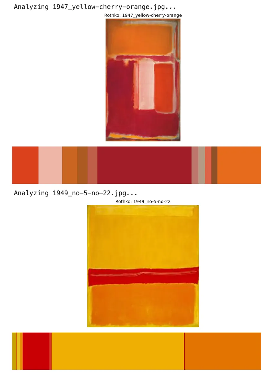 Examples of Rothko classic colorfield paintings shown with their color analysis: