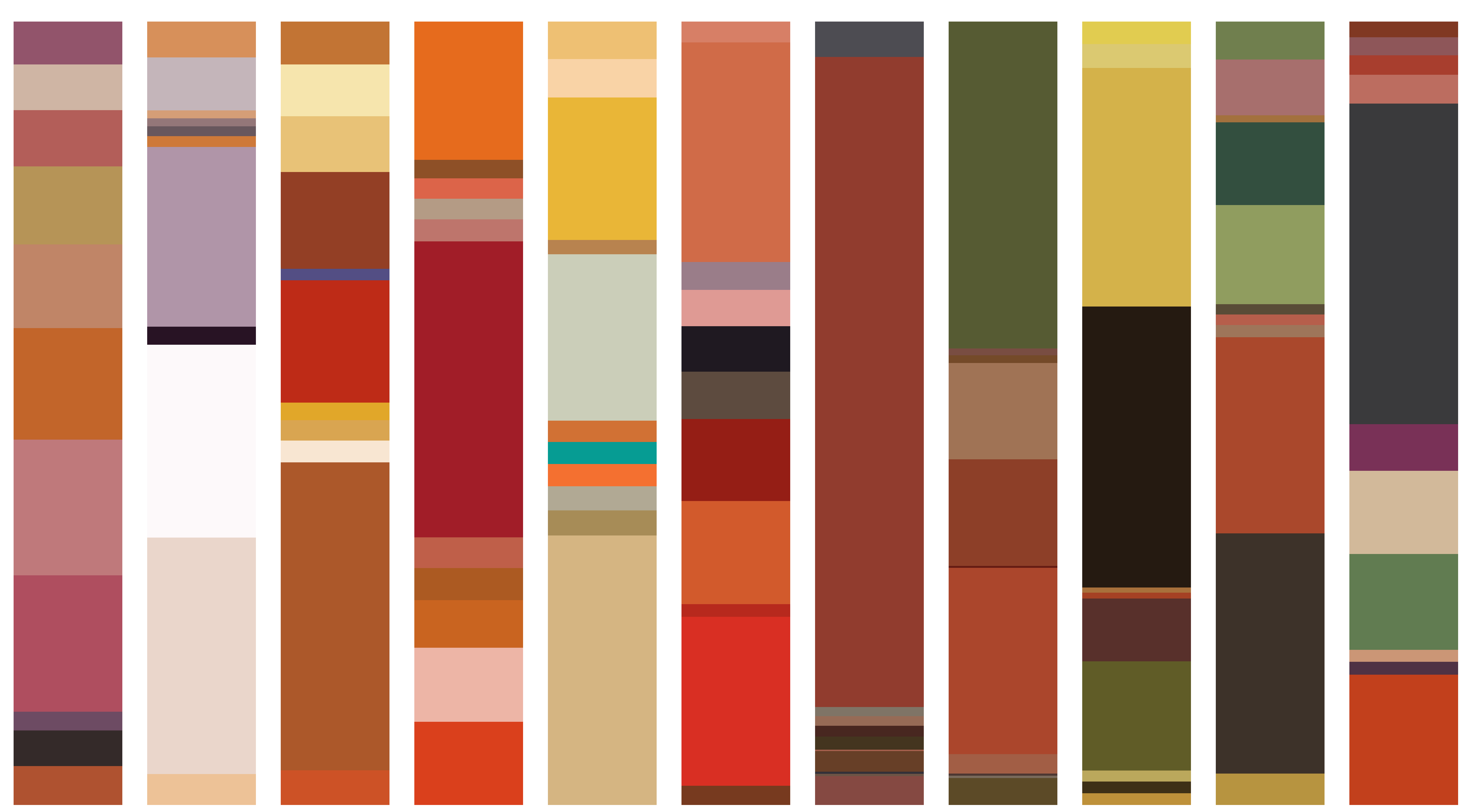 This is a representation of Mark Rothko's use of color over the course of his painting career, in chronological order (as available on wikiart.org)